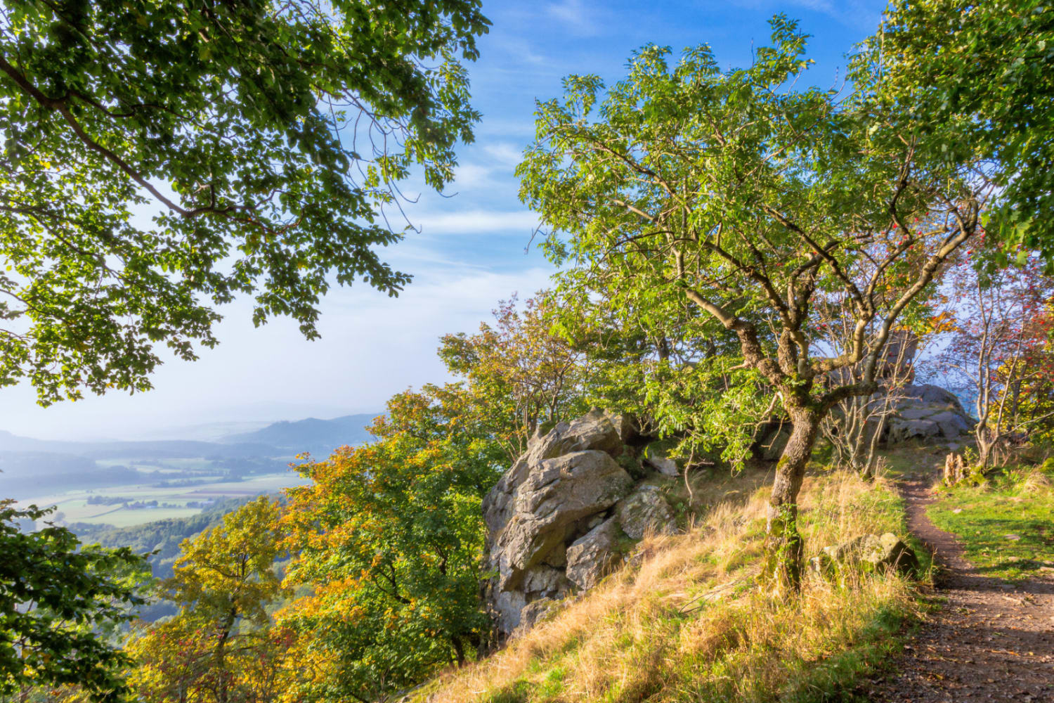 Der Weg zum Kälberhutstein führt durch abwechslungsreiche Landschaften mit dichten Wäldern und offenen Wiesen. Der Pfad ist gut begehbar und auch für Familien geeignet. Oben angekommen, lädt der Felsen zum Verweilen ein und bietet einen idealen Platz für eine Rast mit Panoramablick. Die Ruhe und die beeindruckende Aussicht machen den Kälberhutstein zu einem besonderen Erlebnis in der Rhön.