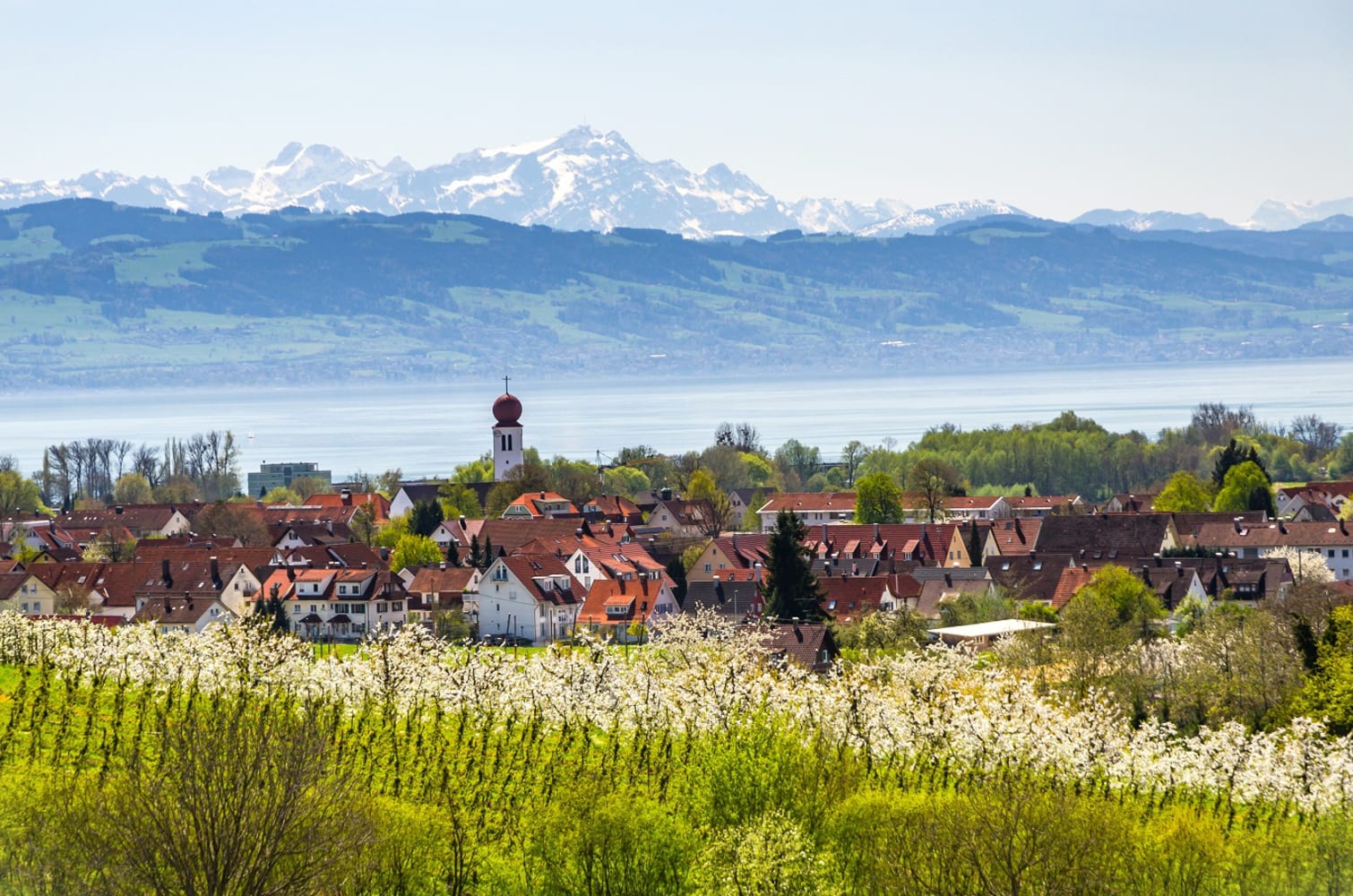Erleben Sie den Kressbronner Bauernpfad, einen familienfreundlichen Rundweg von 2,5 Kilometern Länge, der durch die idyllischen Obstplantagen und Weinberge oberhalb des malerischen Bodenseeortes Kressbronn führt. Diese leichte Wanderung, die etwa eine Stunde dauert, bietet atemberaubende Panoramablicke auf den Bodensee und die Alpen.
