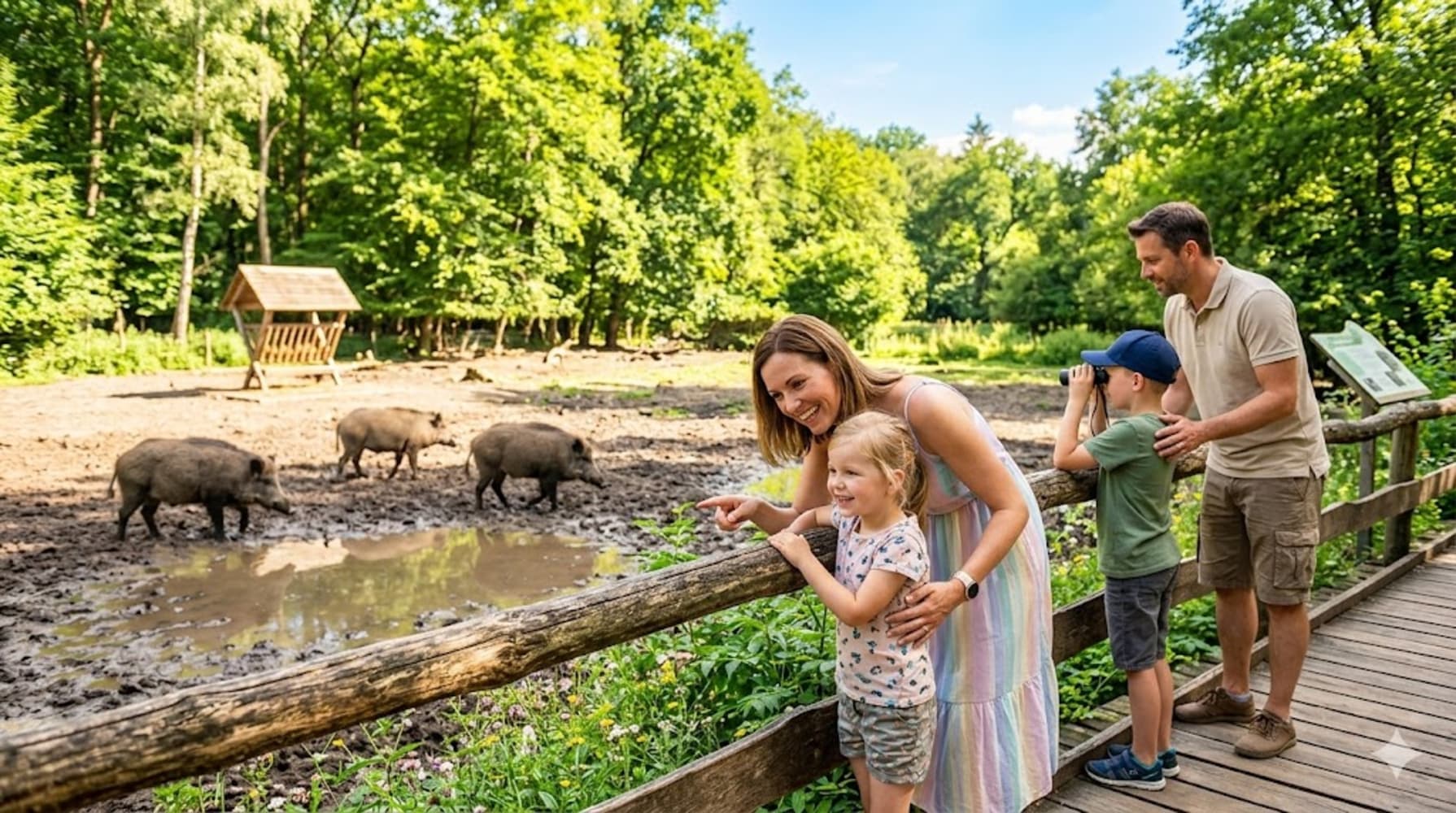 Beobachten Sie scheue Wildtiere in ihrer natürlichen Umgebung und lassen Sie sich von der Ruhe der alten Baumbestände verzaubern. Unsere liebevoll gestalteten Spielbereiche laden Kinder dazu ein, ihre Geschicklichkeit zu erproben und auf Entdeckungstour zwischen den Bäumen zu gehen. Überall laden lauschige Plätze zum Verweilen ein, während Sie die frische Waldluft genießen und den Alltag für einen Moment vollständig vergessen.