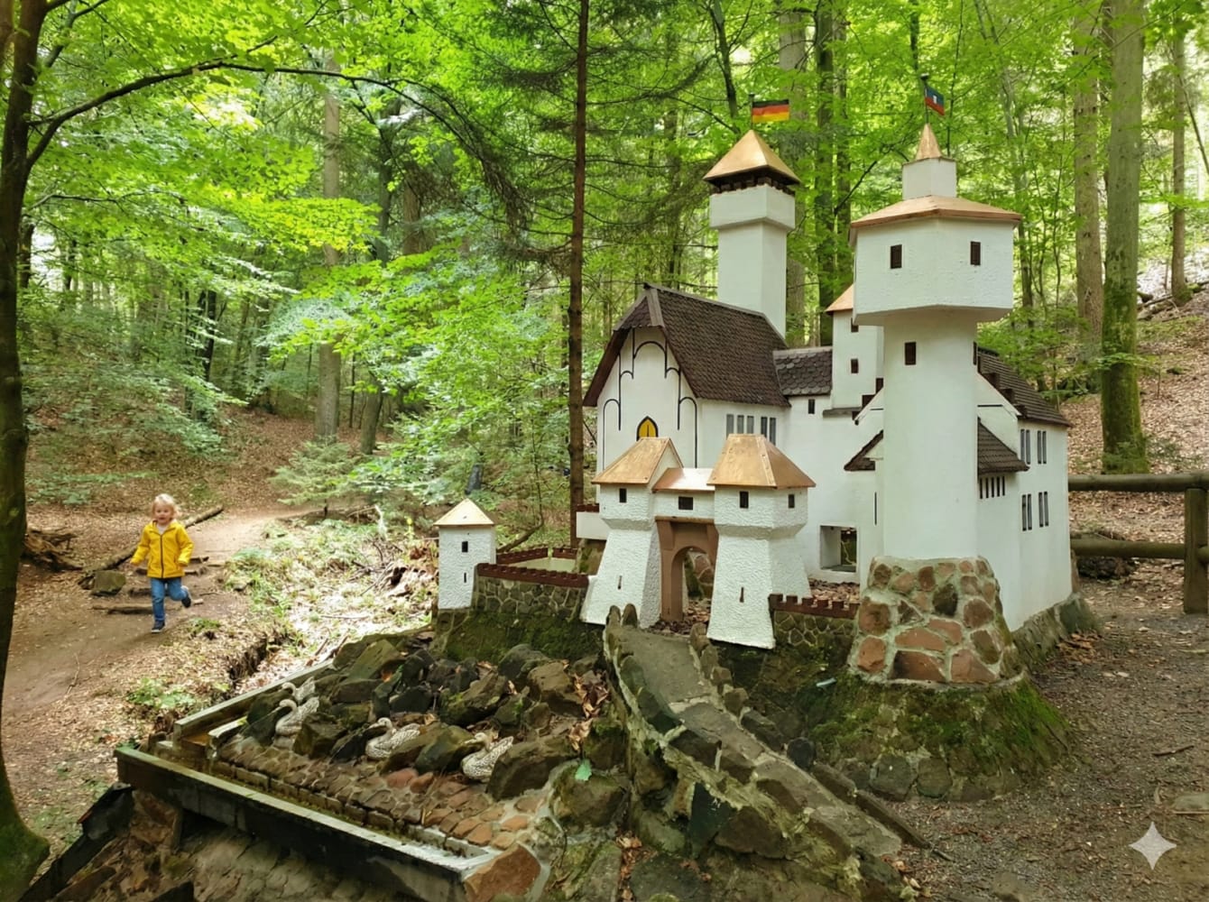 Der Obrunnschlucht Märchenpfad entführt dich sofort in eine geheimnisvolle Welt voller Sagen und Mythen mitten im grünen Odenwald. Du wanderst gemütlich entlang eines sanft plätschernden Bachlaufs, während dich hinter jedem Baum und Felsen kleine architektonische Meisterwerke überraschen. Die liebevoll gestalteten Miniaturen von Burgen und Schlössern lassen dabei nicht nur die kleinen Kinderaugen vor purer Begeisterung strahlen.