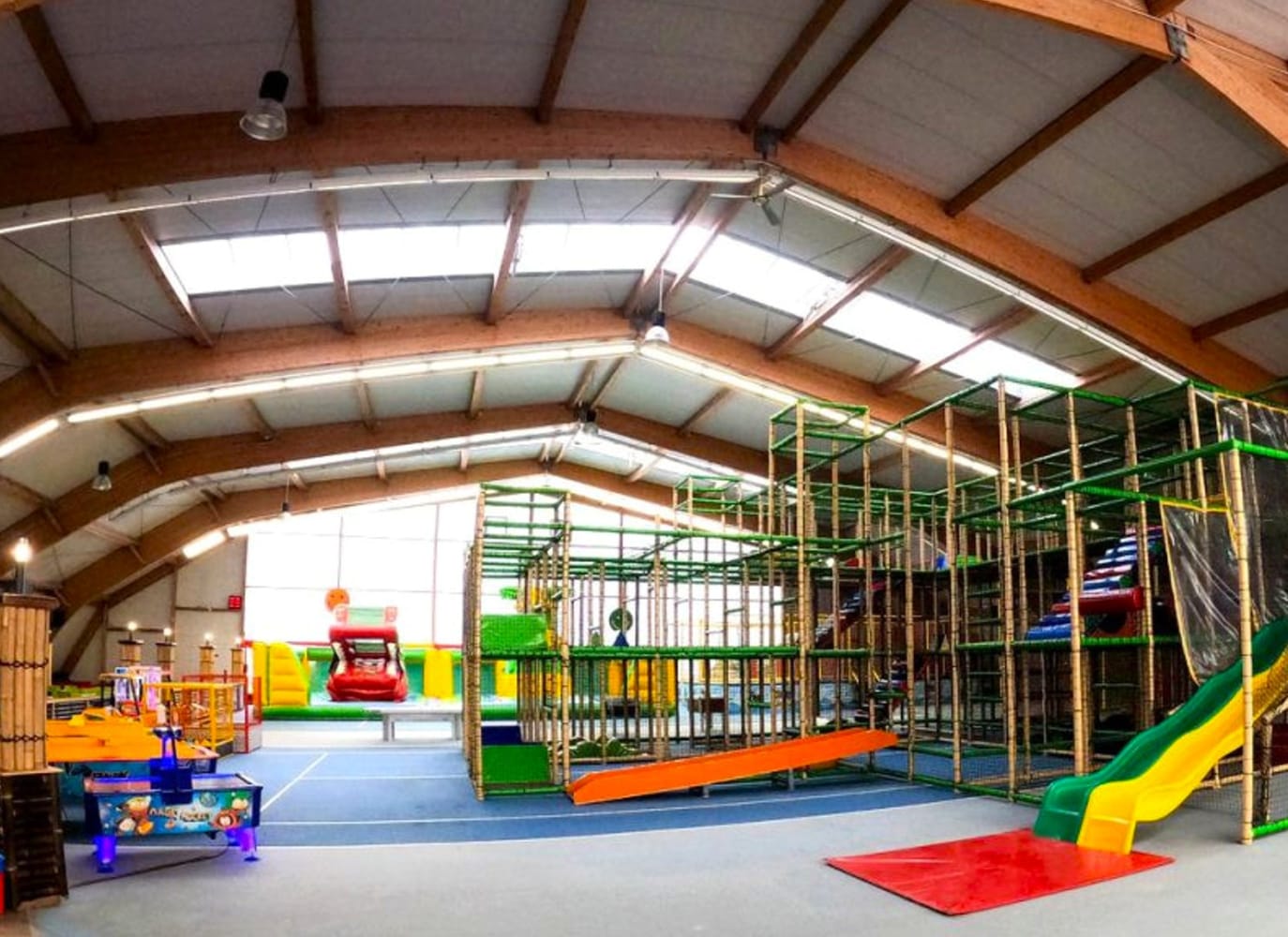 Drinnen gibt es alles, was kleine (und große) Abenteuerlust stillt: Ein 6-Meter-hoher Kletterturm, Rutschlandschaften, Trampoline, Go-Kart und Bumper Cars,Hüpfburgen, Hindernisbahnen, Autoscooter, Spielbereiche für Kleinkinder und viele weitere Attraktionen. Für zwischendurch gibt es eine kostengünstige Gastronomie — oder ihr bringt einfach euer eigenes Essen und Trinken mit. Geburtstage lassen sich hier unkompliziert feiern und werden mit allem drum und dran organisiert.